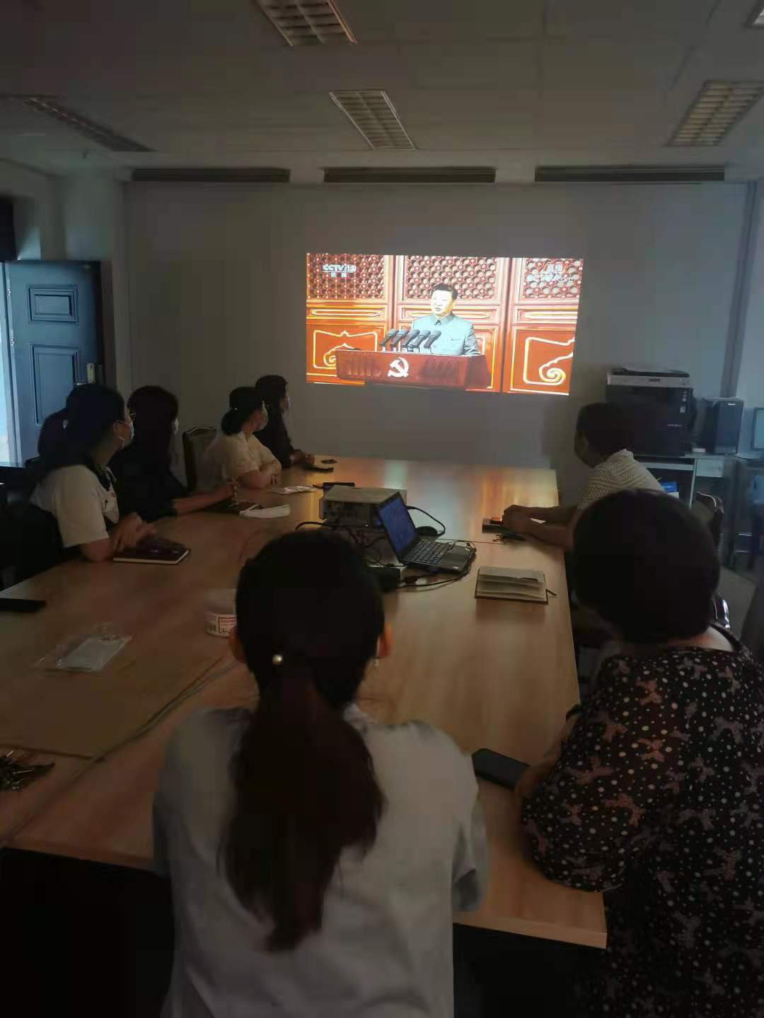 2021年7月1日,庆祝中国共产党成立100周年大会在天安门广场隆重举行,习近平总书记发表重要讲话,当天财务处党支部全体党员和教职工群众集中观看了大会的直播。2021年7月7日下午在会议室,首先邓立华带领大家认真学习了总书记的讲话全文,随后大家将七一讲话精神与学校的发展建设结合起来,从自身的工作岗位出发畅谈自己的感悟。