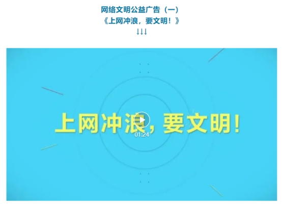 视频观看地址:网络文明公益广告丨上网冲浪,要文明!